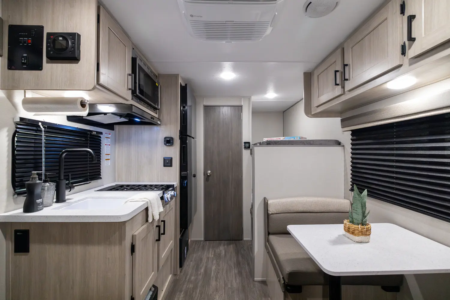 Small but versatile, featuring bunk beds for families or friends. Lightweight construction ensures easy towing and flexible campsite options while maintaining comfort for outdoor adventures.