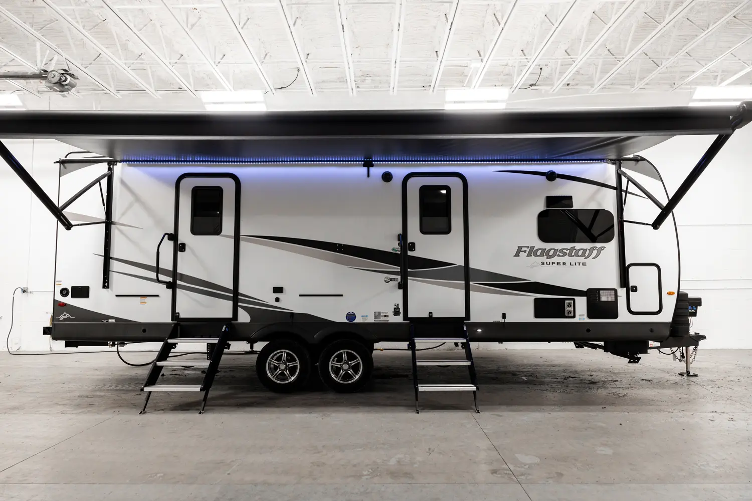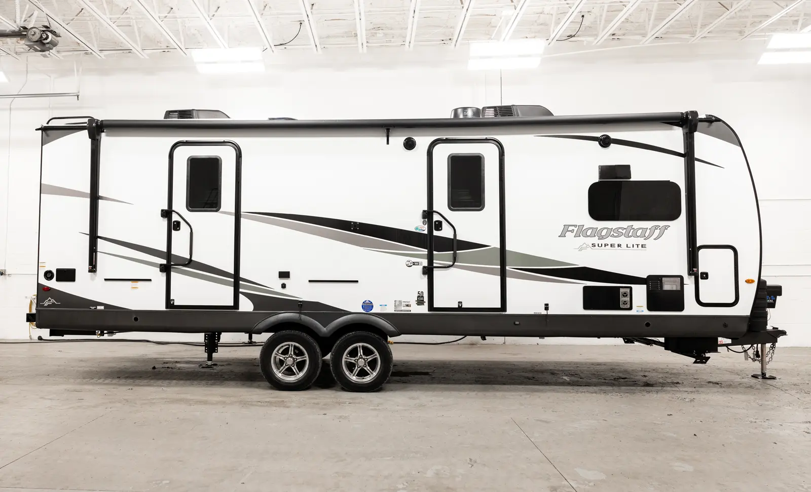 The Flagstaff Super Lite Travel Trailers 26FKBS has two entries and two slide outs. Exterior features include: fiberglass exterior and 21' awning. Interiors features include: front kitchen, free-standing dinette option and rear bedroom.