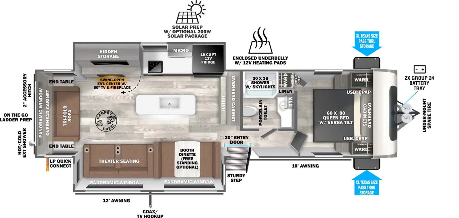 With everything from the look of the professionally designed fabrics to the attention to detail in the well crafted crown molding slide out fascia, Wildwood Heritage Glen has left nothing out when it comes to quality.
