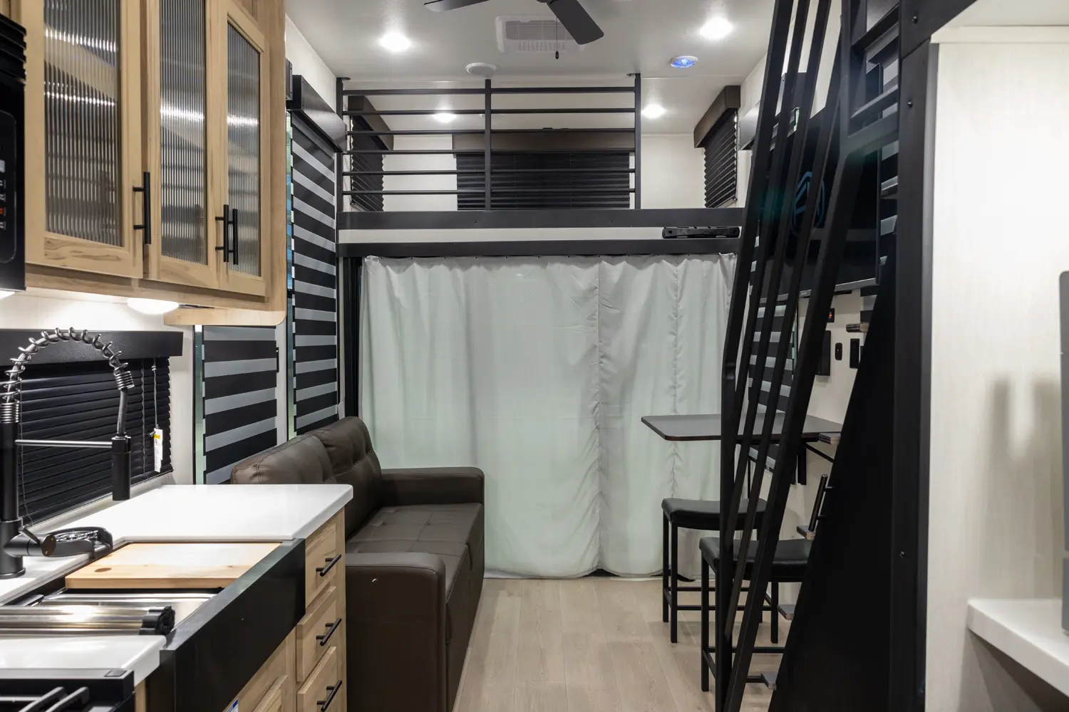 Introducing the newest addition to the Mini Loft series by Timberwolf, the 20OG! This model is quite compact at just under 36ft and features a cozy rear patio. Other notable highlights include 2 king size beds, a dishwasher, combo washer/dryer, and a full-size fridge.