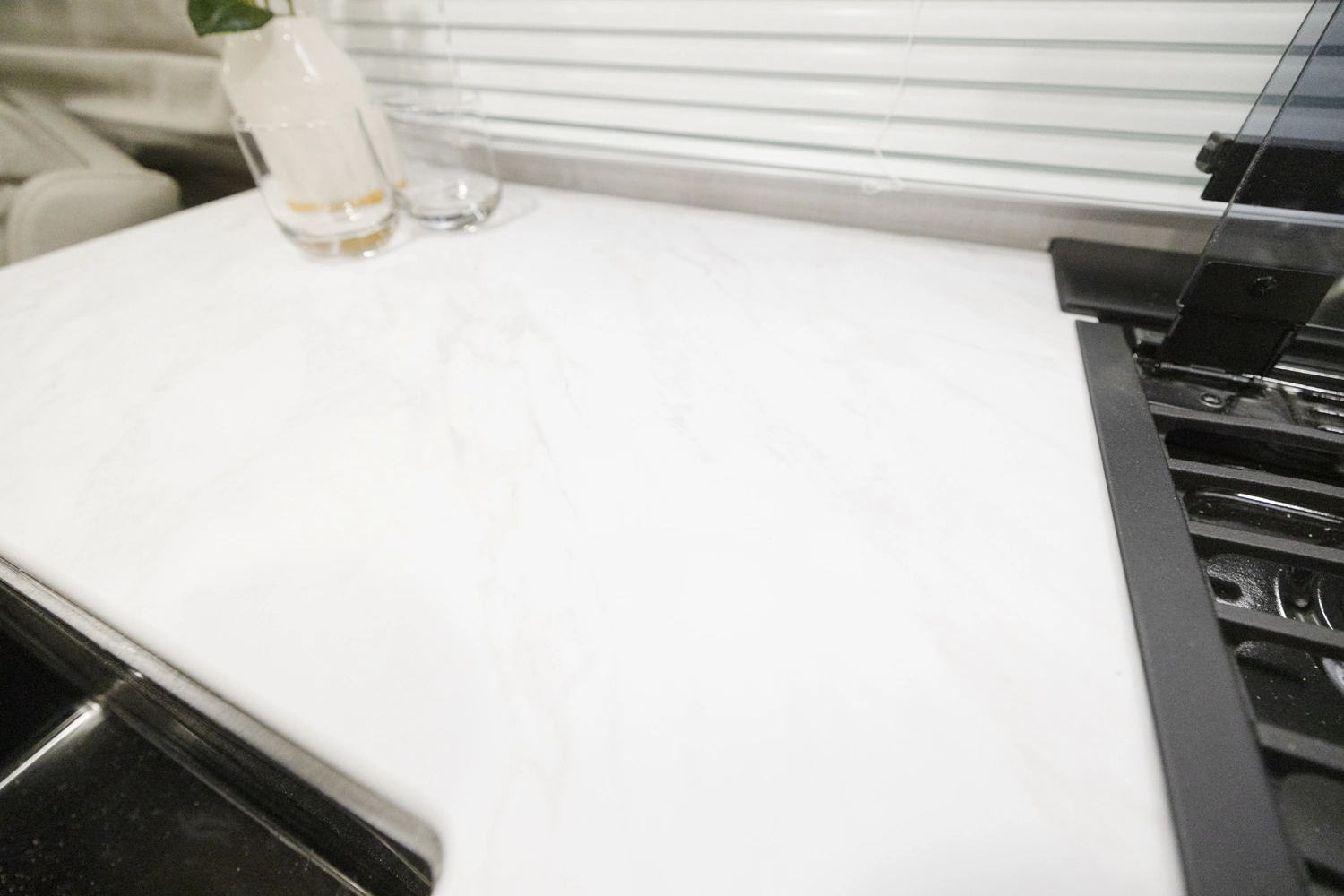 • True Flush Floor Slideouts with Fabric-Backed Shaw Linoleum